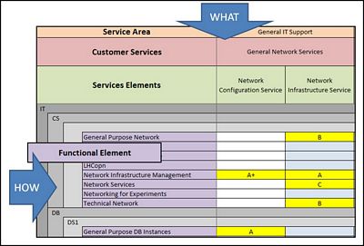 These service, that are available to users, are depending on tools, functions, and activities provided and supported by the sections and groups at CERN. So CERN groups provide Functional Elements, that support user services. On the functional elements, we have assigned the role of Functional Service Manager