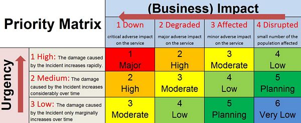 The Priority [P] is obtained from the combination of Impact [I] and Urgency [U]. [P] = [U] + [I] - 1